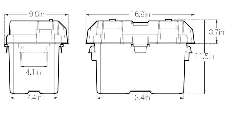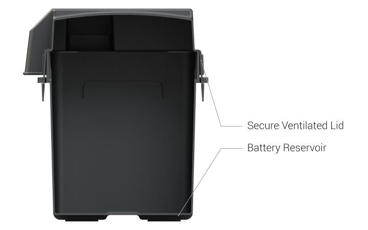 Fabriqué en plastique renforcé haute résistance, ce boîtier est conçu pour résister aux impacts, aux rayons UV, aux hydrocarbures et aux conditions climatiques extrêmes, tout en conservant ses propriétés mécaniques jusqu’à -20 °F. Sa conception entièrement ventilée permet l’évacuation sécuritaire des gaz émis par la batterie, réduisant les risques liés à l’accumulation de vapeurs.
