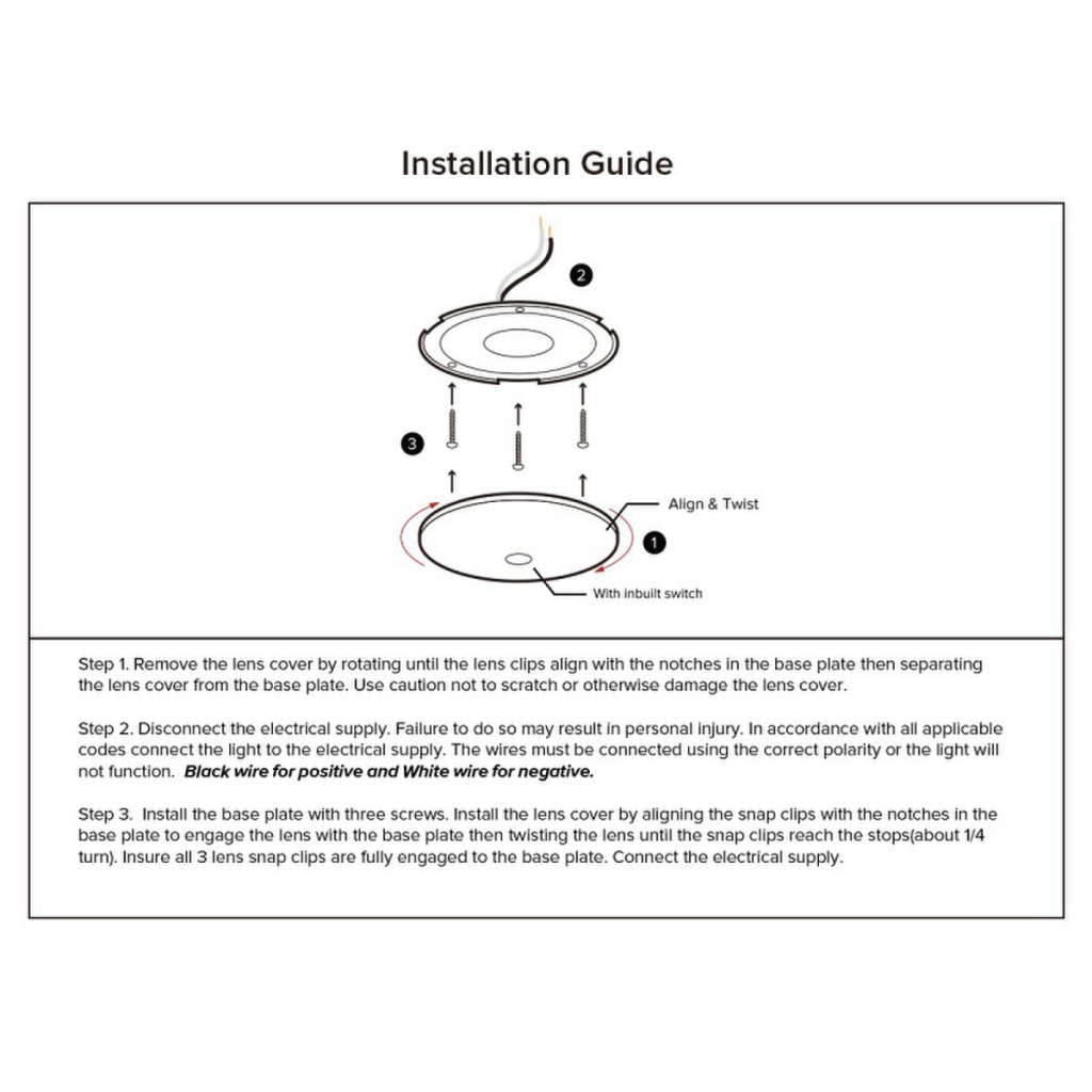 Son interrupteur intégré permet un contrôle simple et rapide, tandis que son installation en surface assure une fixation solide et une mise en place facile. La base en aluminium revêtu combinée à une lentille givrée en polycarbonate offre une excellente durabilité et un design moderne qui s’intègre parfaitement à tout type d’intérieur.