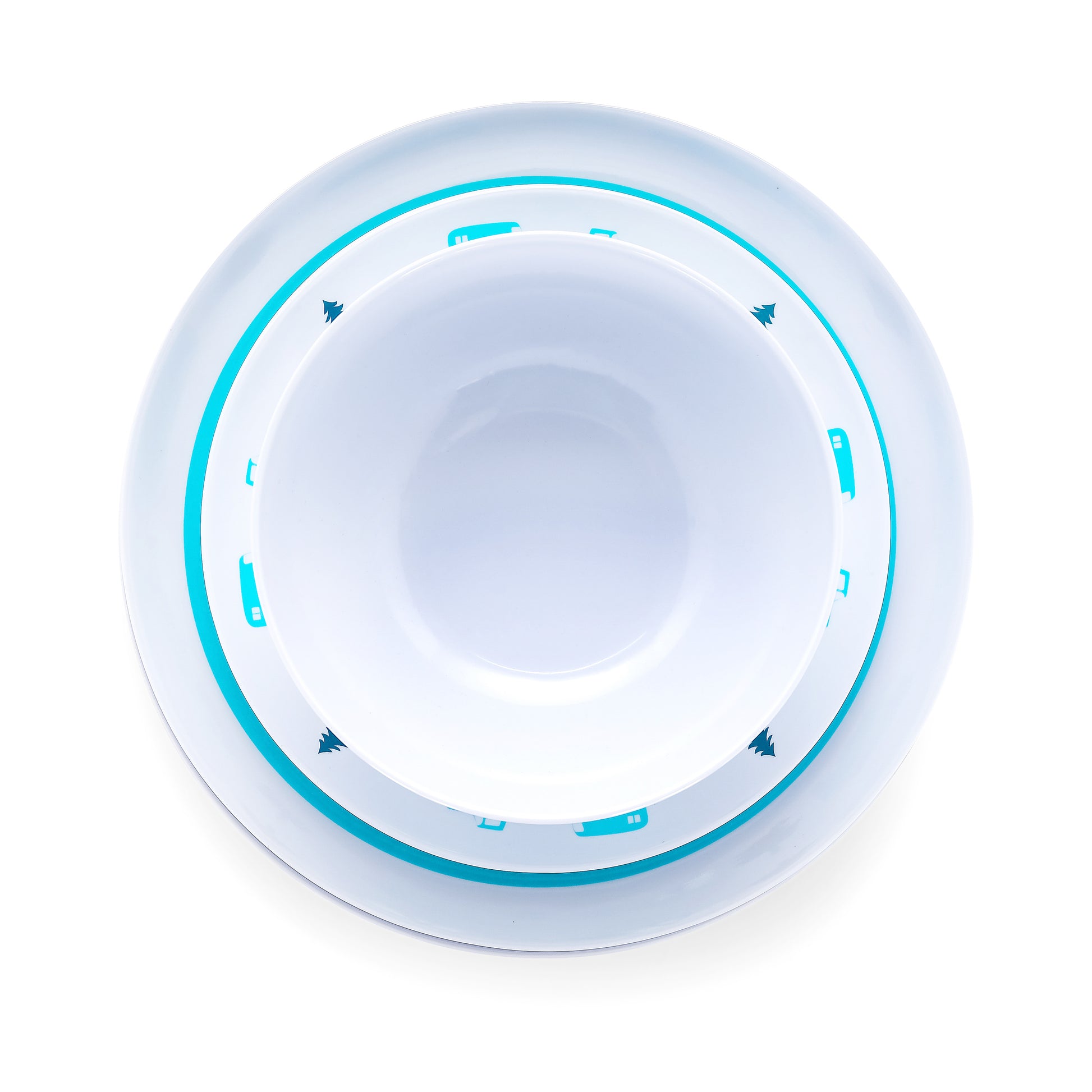 Le Service de Vaisselle "Life is Better at the Campsite" comprend 12 pièces : (4) grandes assiettes à dîner, (4) petites assiettes à salade et (4) bols. Elles sont blanches avec un design bleu de sapin et de camion. Ce service de vaisselle durable en mélamine est pratiquement incassable et ne contient pas de BPA. Il est parfait pour les bateaux, les VR et le camping. Chaque pièce est facile à nettoyer et passe au lave-vaisselle sur le panier du haut. Ne pas utiliser au micro-ondes.