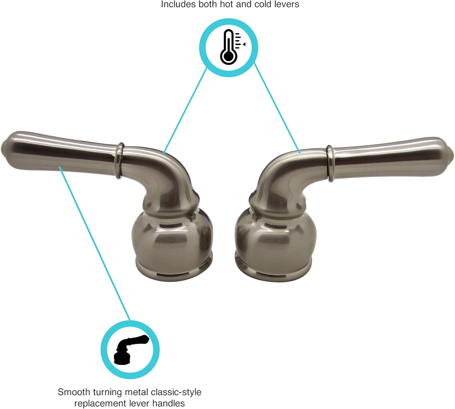 Dura Faucet (DF-RKCM-SN) Poignées de remplacement classiques en métal pour VR (Nickel satiné brossé)
