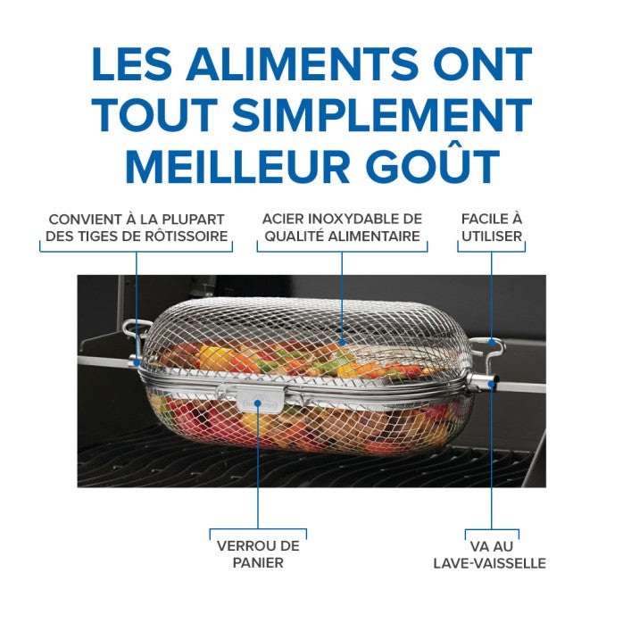 - Accessoire rotissoire : Le panier rotissoire de Napoleon facilite la cuisson de ailes de poulet, frites, légumes grillés et bien plus encore directement sur le gril.