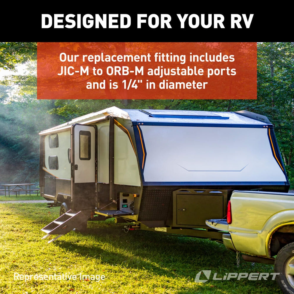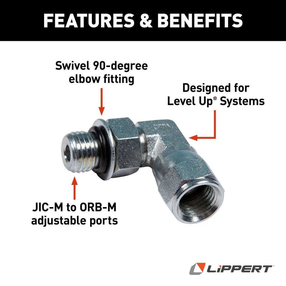 Remplacez votre raccord hydraulique usé ou endommagé avec ce coude pivotant à 90° de 1/4" d’origine Lippert, conçu spécifiquement pour les systèmes de nivellement hydrauliques Level Up (remorquables et motorisés). Cette pièce de rechange officielle assure une compatibilité parfaite et une installation facile sur votre VR.
